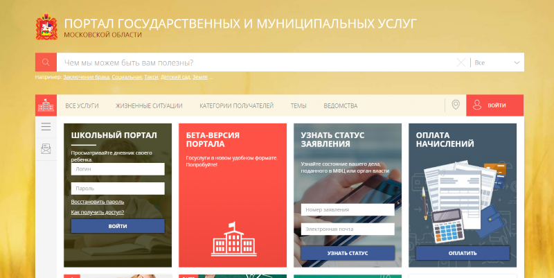 1. Перейти на Портал государственных и муниципальных услуг Московской области